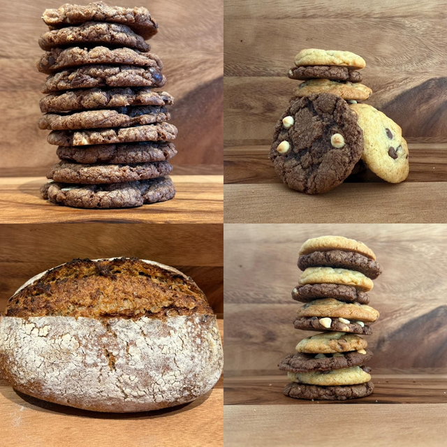 Indulge in the perfect balance of artisan sourdough bread and freshly baked irresistible sourdough cookies. Perfect for sharing, or keeping all to yourself. 💖